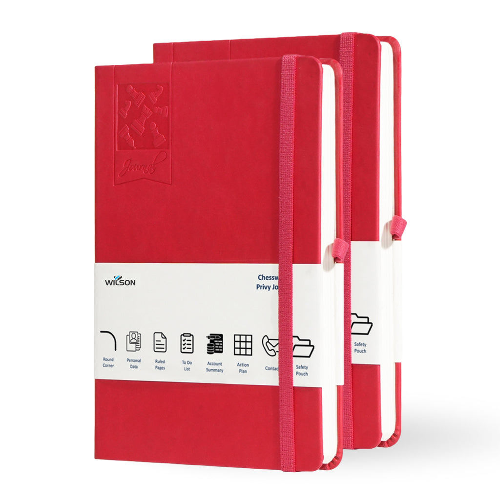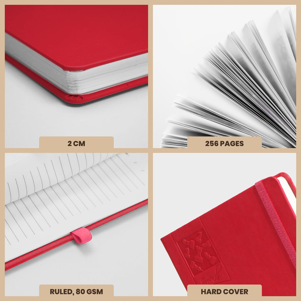 The A5 Chess Works Privy Journal in Red includes 256 ruled pages of premium 80 GSM FSC paper. With its sturdy cover and elegant design, it’s perfect for daily writing, journaling, and professional use.