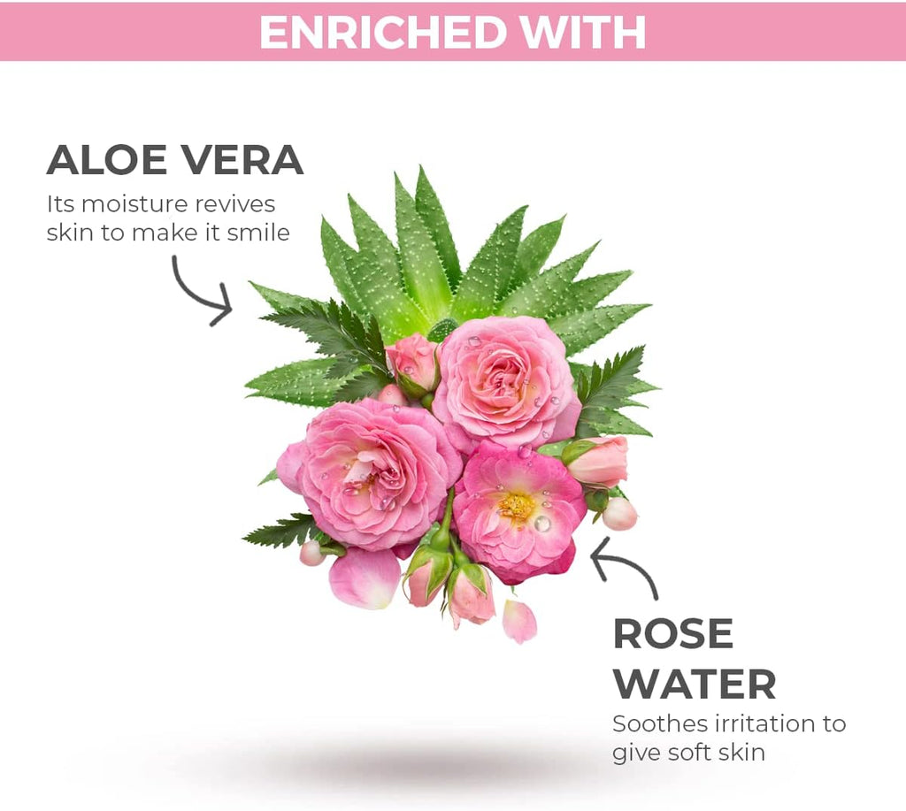 Known for our signature natural extracts, our body wash is made with 100% natural rose and aloe Vera extracts
