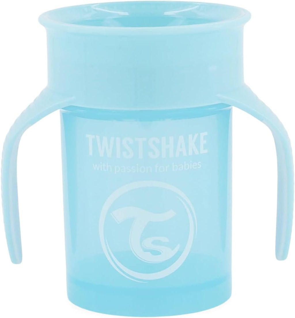 Help your child transition to independent drinking with the Twistshake 360 Cup 6+m in Pastel Blue. The innovative 360° rim prevents spills and messes, and the BPA-free material is safe for everyday use. The pastel blue finish is bright and fun, making hydration enjoyable for little ones.