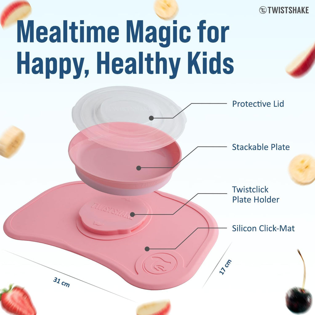 Make mealtime mess-free with the Twistshake Click-Mat Mini + Plate in Pastel Pink. This innovative set features a suction mat that keeps the plate securely in place, reducing spills and mess. Made from BPA-free materials, it’s safe for your child and dishwasher safe for easy cleaning. The pastel pink colour adds a fun and stylish touch to your tableware collection.